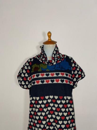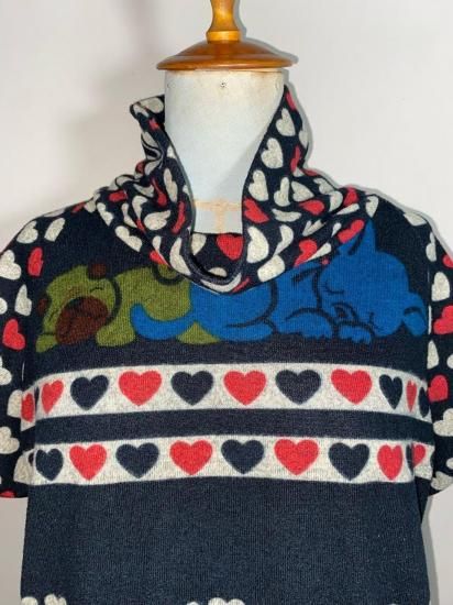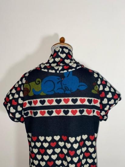 00s Gray / Red Wool Knit Hoodie Coat